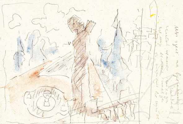 Penna e acquarello su carta