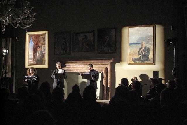 Da sinistra: V. Nicodemo, A. Quasimodo e M. Cei durante la performance teatrale |